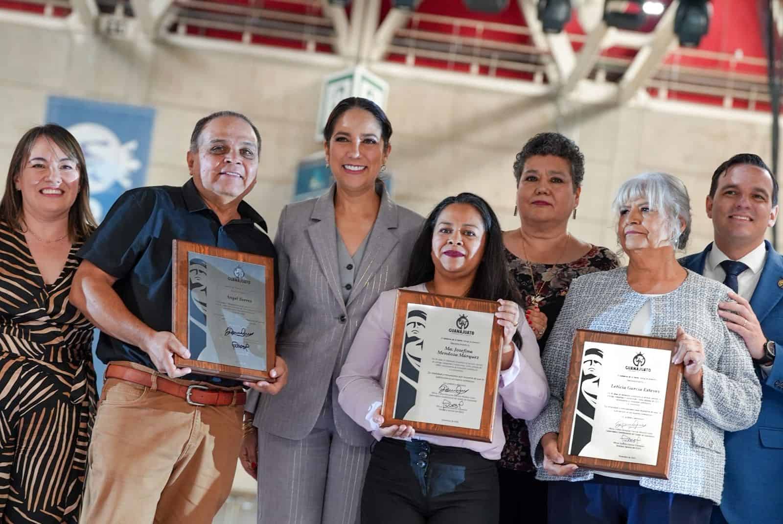 Se entregaron reconocimientos a jubilados con 41, 43 y 45 años de servicio, y estuvieron presentes miembros del gabinete estatal, la directora del ISSEG, Judith Juárez Guzmán, así como representantes de los sindicatos del magisterio.