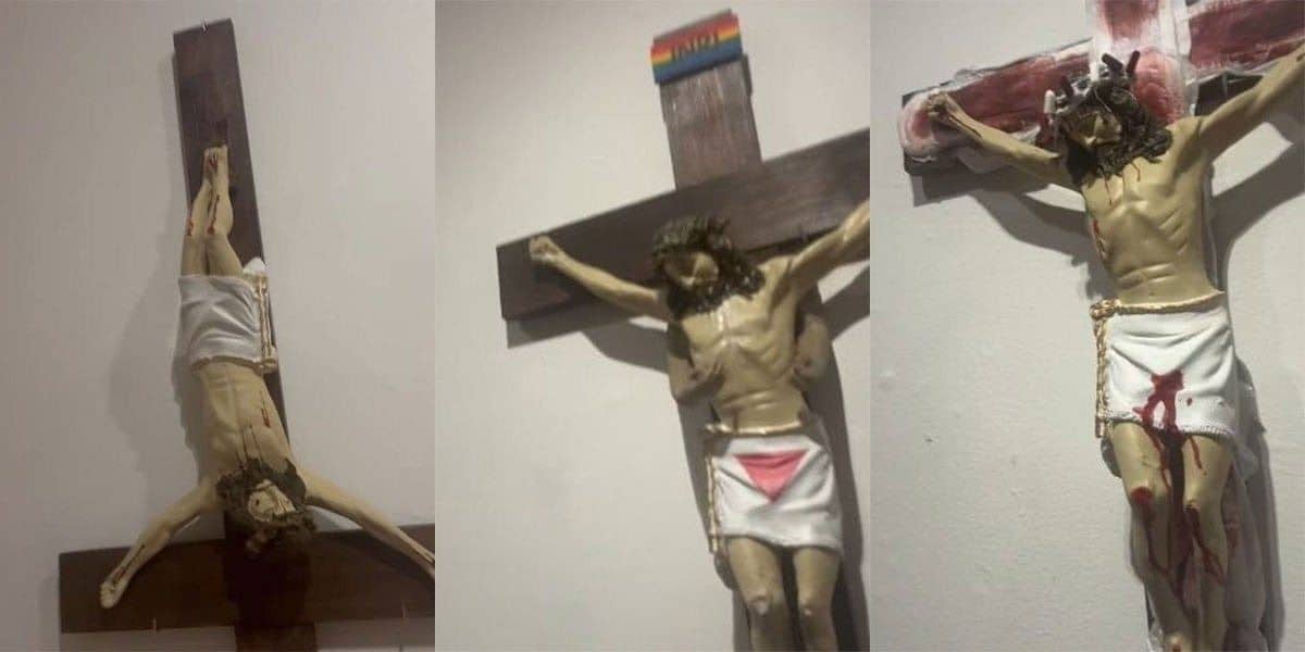 La Universidad de Guanajuato inauguró hace unos días la exposición “Iconoclasia” en la Galería Jesús Gallardo. La muestra, creada por el estudiante Eder Martínez como parte de su taller terminal en la Licenciatura en Artes Visuales, presentó esculturas de la crucifixión de Jesús intervenidas con elementos contemporáneos. Entre las piezas se observaron representaciones de Cristo con tatuajes, crucificado al revés, vestido con indumentaria femenina o en situaciones que aludían a la diversidad sexual y de género.