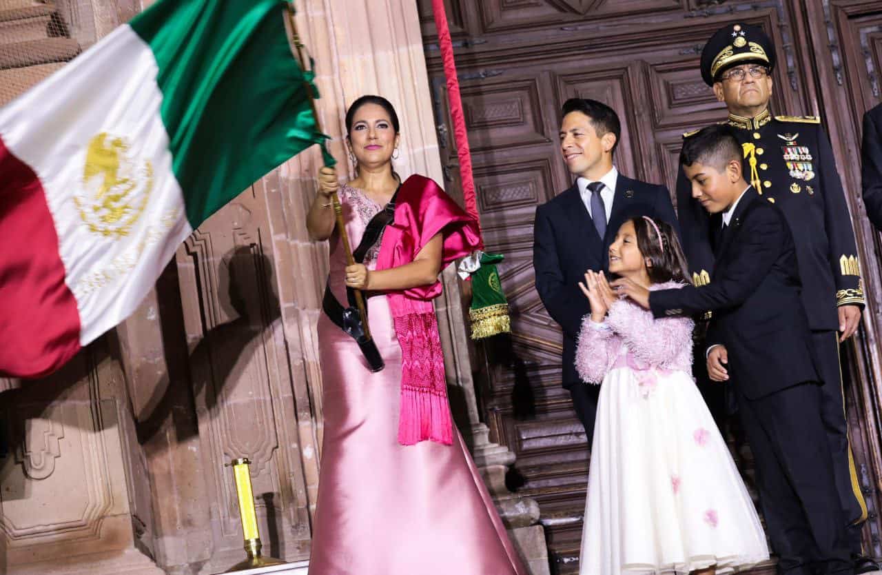 Luego del Grito, la Mandataria Estatal ondeó la Bandera y repicó la campana. Acto seguido se entonó el Himno Nacional; y la Gobernadora entregó la Bandera a la Escolta Militar para su resguardo.