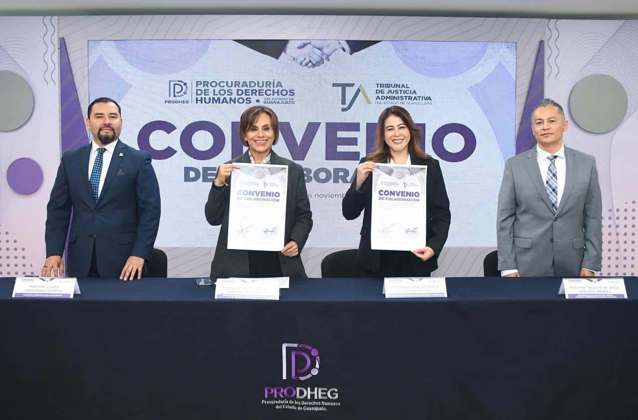 La Procuraduría de los Derechos Humanos del Estado de Guanajuato (PRODHEG) y el Tribunal de Justicia Administrativa del Estado de Guanajuato (TJA) firmaron un Convenio Marco de Colaboración Institucional con el propósito de promover acciones conjuntas de capacitación, profesionalización y difusión de la cultura de los derechos humanos.