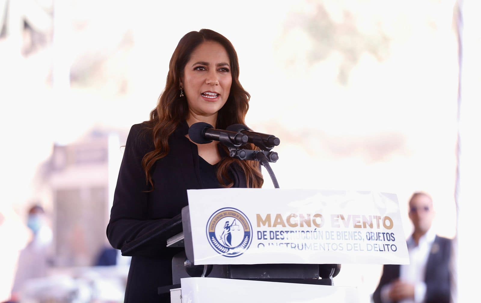 La Gobernadora del Estado de Guanajuato, Libia Dennise García Muñoz Ledo, participó en el Magno Evento de Destrucción de Bienes, Objetos o Instrumentos del Delito, organizado por la Fiscalía General del Estado de Guanajuato (FGEG), como parte de las acciones para fortalecer la legalidad, la transparencia y la seguridad en la entidad.