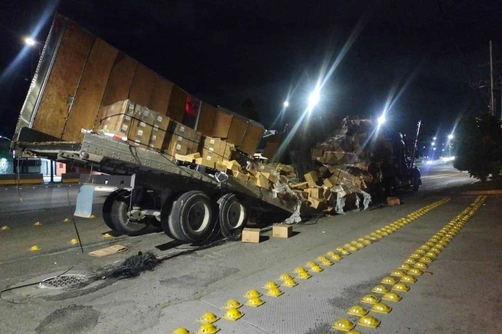 Un tráiler que transportaba entre 20 y 25 toneladas de cable de fibra óptica volcó la madrugada de este viernes en el distribuidor vial Juan Pablo II, a la altura del bulevar Aeropuerto con López Mateos, en el desvío hacia Silao. El accidente ocurrió…